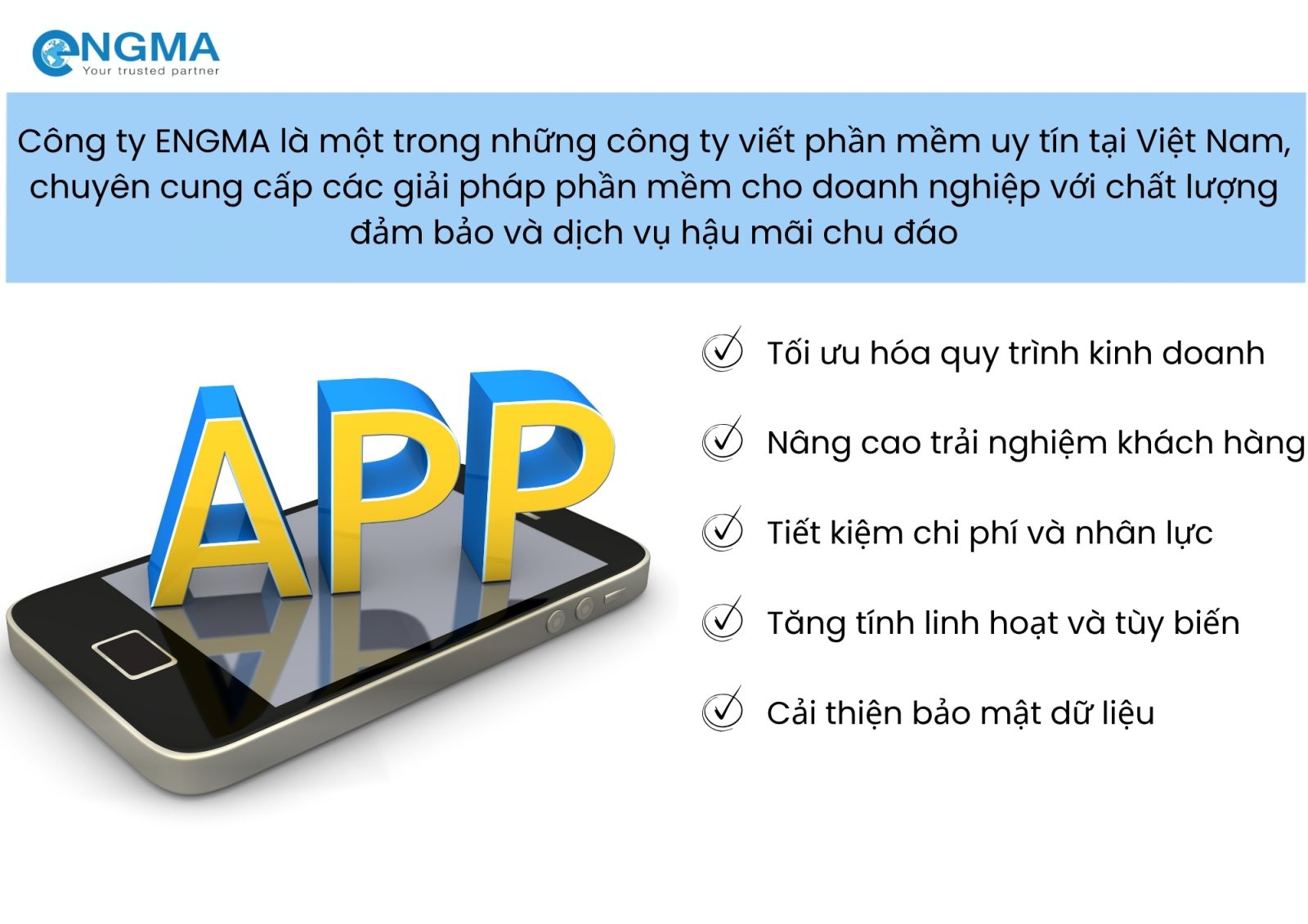Lập trình ứng dụng là công cụ quan trọng giúp các doanh nghiệp hiện đại nâng cao hiệu quả, cải thiện trải nghiệm khách hàng và duy trì sự cạnh tranh trên thị trường. Việc lựa chọn một đối tác uy tín như Công ty CP TMDV Kỹ Thuật ENGMA giúp doanh nghiệp tiếp cận các giải pháp toàn diện, từ tư vấn, thiết kế, lập trình, đến triển khai và bảo trì.