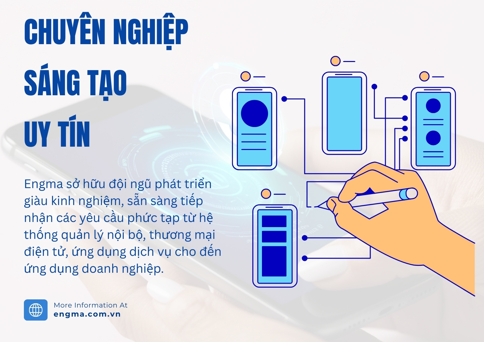 To own a high-quality, stable, and competitive application, businesses need a partner with market knowledge, extensive experience, and a flexible technological mindset. ENGMA Technical Trading and Services Joint Stock Company is a trusted choice for many businesses when wanting to implement mobile application projects. With a focus on "quality - optimization - flexibility," Engma provides solutions that help businesses shorten product launch time, minimize risks, and achieve maximum efficiency.